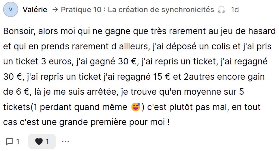 La création de synchronicités est à vivre comme un jeu qui te permet de t'entraîner à créer.