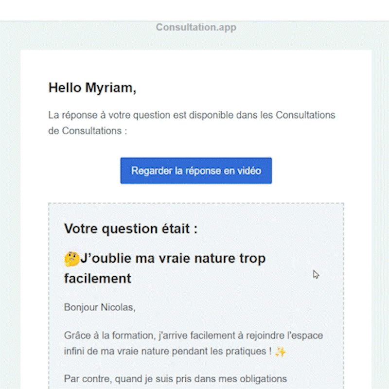 Dès la publication, tu reçois un mail avec un accès direct à la réponse.
